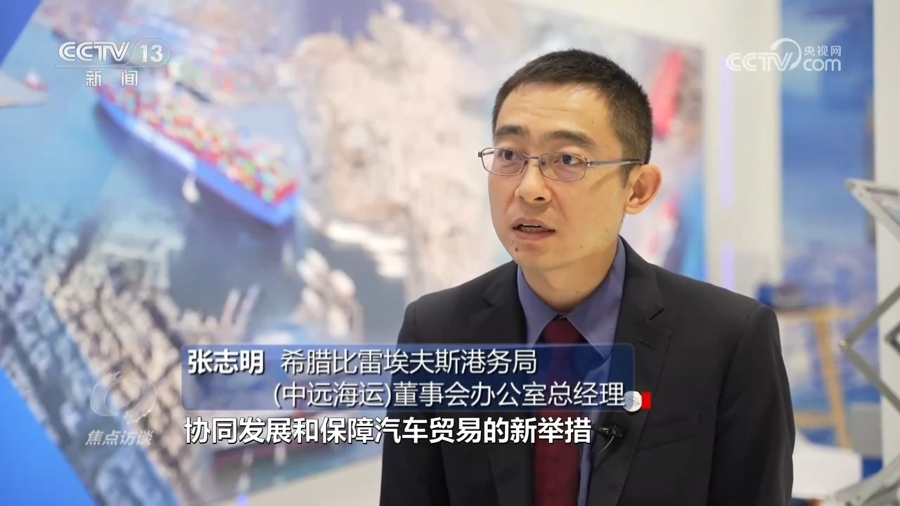 張志明:“第五屆進(jìn)博會(huì)上,比港與中遠(yuǎn)海運(yùn)集團(tuán)共同推出了協(xié)同發(fā)展和保障汽車貿(mào)易的新舉措。進(jìn)博會(huì)后,2022年11月,一艘多用途船停靠比港,卸下來的不是普通的貨物,而是用特制框架箱裝運(yùn)的中國汽車,這些汽車在比港卸下后,通過陸路和水路分撥到歐洲其他地方?!?/p>