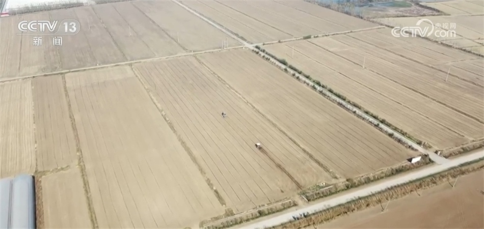 在山東臨沂郯城縣歸昌農(nóng)場的冬小麥種植田里,拖拉機(jī)、播種機(jī)等農(nóng)業(yè)機(jī)械在田間作業(yè),一粒粒麥種隨著播種機(jī)的上下翻動(dòng)被種進(jìn)土地里。