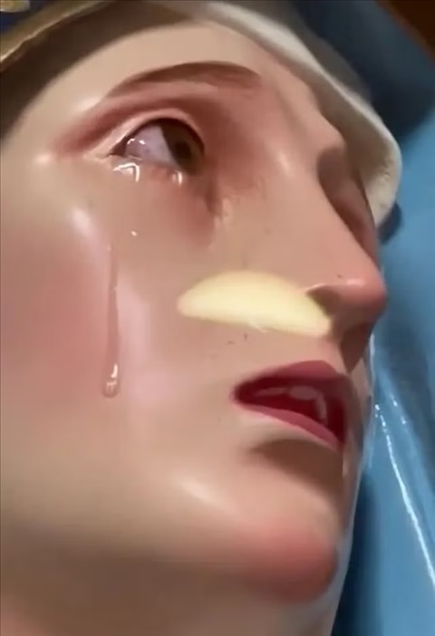 ·墨西哥科利馬州一圣母瑪利亞雕像“落淚”?當?shù)亟淌冢嚎赡苁菨B水。