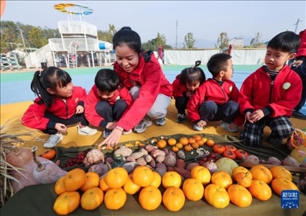 浙江省湖州市長興縣李家巷鎮(zhèn)中心幼兒園開展“冬日校園 樂享豐收”校園豐收節(jié)主題活動。孩子們在老師的帶領下參觀豐收節(jié)農(nóng)作物展、手工藝品展,還參加挑擔子、運蘿卜、接力送玉米等趣味運動,學習知識、鍛煉身體,感受豐收帶來的喜悅。