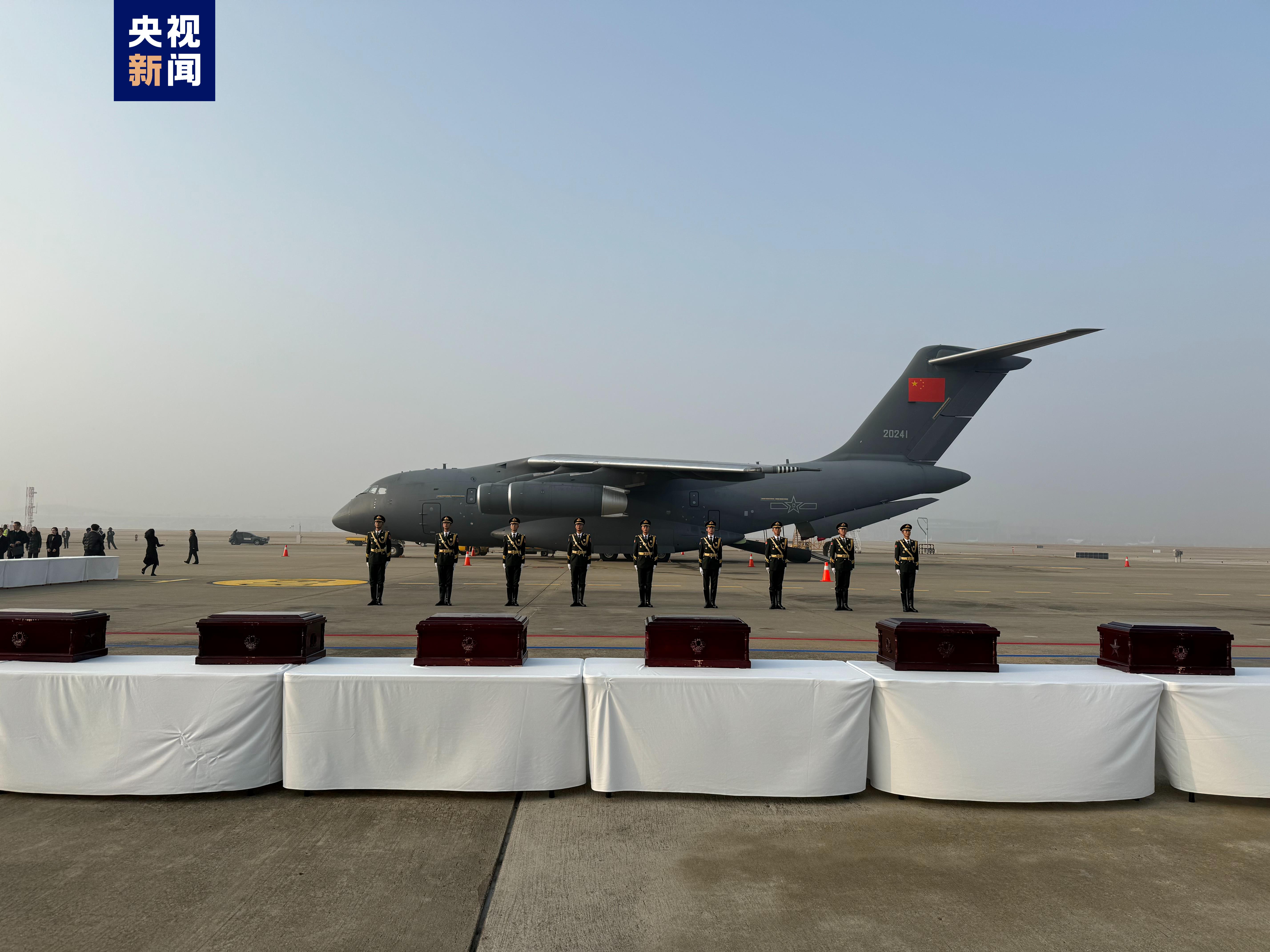 當?shù)貢r間23日上午,中韓雙方在韓國仁川國際機場舉行第十批在韓中國人民志愿軍烈士遺骸及遺物交接儀式。此次韓方共向中方移交25名中國人民志愿軍烈士遺骸及335件遺物,交接儀式后烈士遺骸將搭乘中國空軍運-20專機返回祖國。
