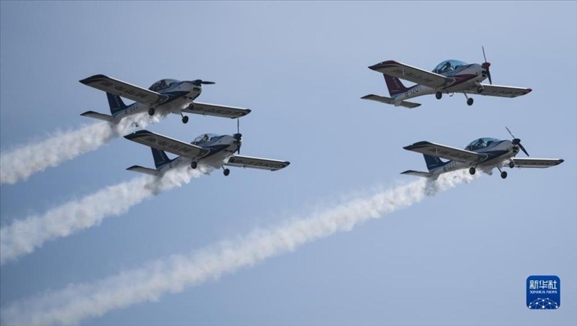 11月23日,山河飛行表演隊(duì)在2023亞洲通用航空展開(kāi)幕式上進(jìn)行飛行表演。