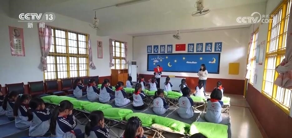 一些鄉(xiāng)村學校也結合實際情況,努力打造午休條件。在湖南株洲這所小學,每個學生都擁有一張可以躺著午休的折疊小床,每天中午能保證至少40分鐘的躺睡時間。