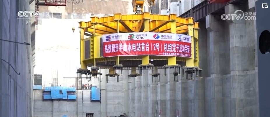 羊曲水電站首臺機(jī)組定子吊裝成功