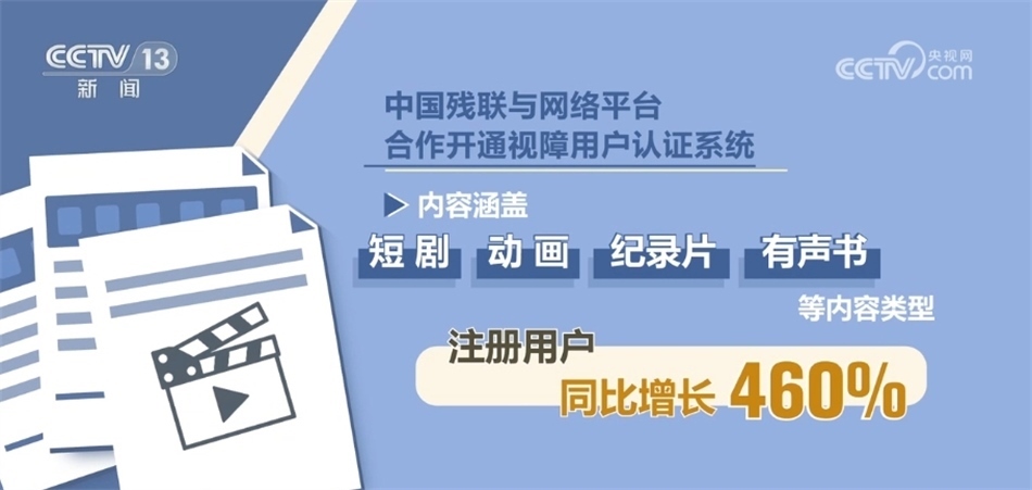 數(shù)據(jù)顯示,中國殘聯(lián)與網(wǎng)絡(luò)平臺(tái)合作開通視障用戶認(rèn)證系統(tǒng)一年以來,無障礙影視作品已超2000部(集),同比增長超400%,內(nèi)容涵蓋短劇、動(dòng)畫、紀(jì)錄片、有聲書等內(nèi)容類型,注冊(cè)用戶同比增長460%。