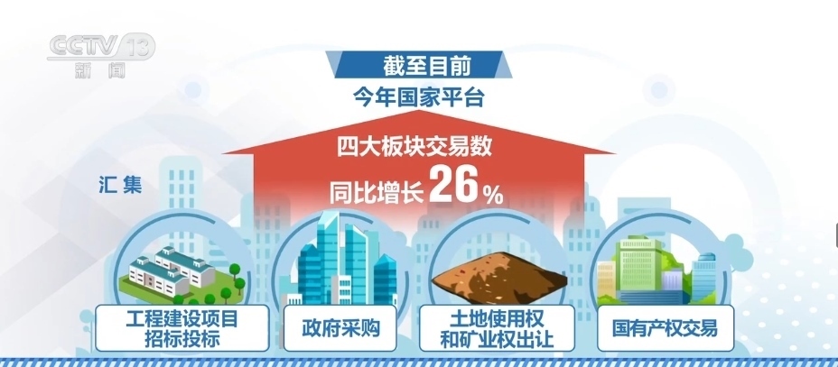 另外,全國公共資源交易平臺上的交易信息匯集發(fā)布量又創(chuàng)新高。截至目前,2023年國家平臺匯集工程建設(shè)項目招標投標、政府采購、土地使用權(quán)和礦業(yè)權(quán)出讓、國有產(chǎn)權(quán)交易這四大板塊交易數(shù)同比增長26%。