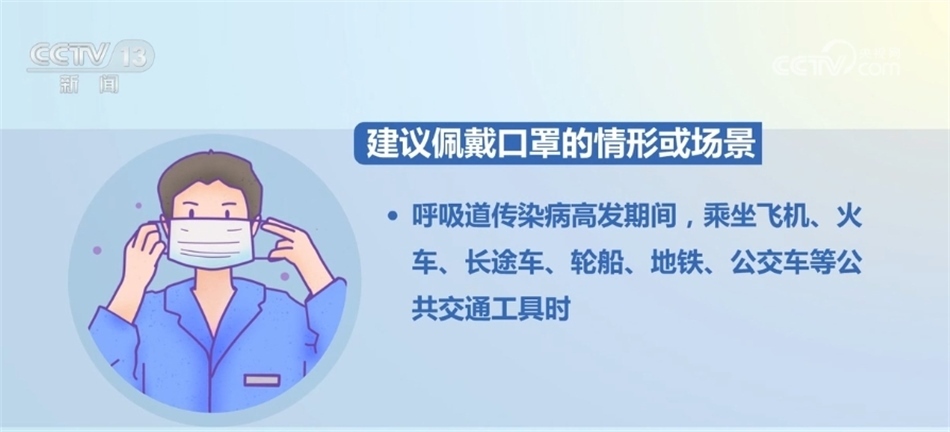 建議佩戴口罩的情形或場(chǎng)景包括:呼吸道傳染病高發(fā)期間,乘坐飛機(jī)、火車、長(zhǎng)途車、輪船、地鐵、公交車等公共交通工具時(shí)。呼吸道傳染病高發(fā)期間,進(jìn)入超市、影劇院、客運(yùn)場(chǎng)站、廂式電梯等環(huán)境密閉、人員密集場(chǎng)所時(shí)。呼吸道傳染病高發(fā)期間,老年人、慢性基礎(chǔ)疾病患者、孕婦等前往室內(nèi)公共場(chǎng)所時(shí)。與出現(xiàn)呼吸道傳染病癥狀者共同學(xué)習(xí)、生活或工作期間。