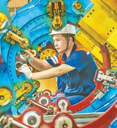 安徽馬鞍山經(jīng)開(kāi)區(qū),工人在裝配冶金智能裝備產(chǎn)品。