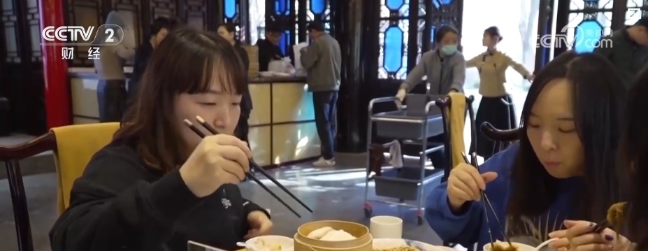 上午,記者在揚(yáng)州某茶社看到,店內(nèi)座無虛席,不少游客正排隊(duì)等待叫號。