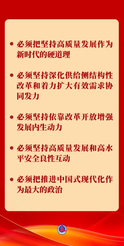 “五個(gè)必須”,進(jìn)一步豐富和發(fā)展了習(xí)近平經(jīng)濟(jì)思想,為以中國(guó)式現(xiàn)代化全面推進(jìn)強(qiáng)國(guó)建設(shè)、民族復(fù)興偉業(yè)指明了前進(jìn)方向。