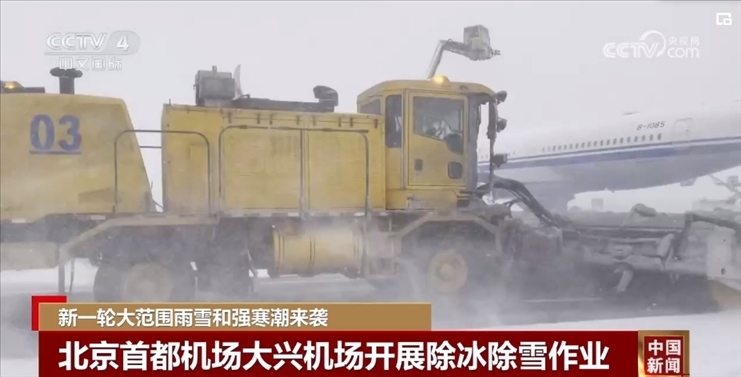 北京首都機(jī)場(chǎng)大興機(jī)場(chǎng)開(kāi)展除冰除雪作業(yè)