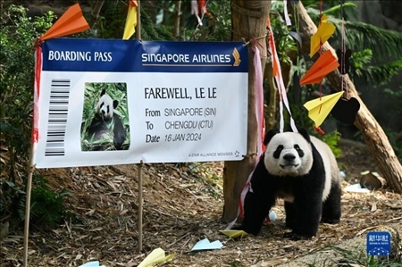 12月13日,新加坡河川生態(tài)園為首只在新加坡出生的大熊貓“叻叻”舉行歡送會(huì)?!斑愤贰睂⒂?024年1月16日啟程返回中國(guó)。