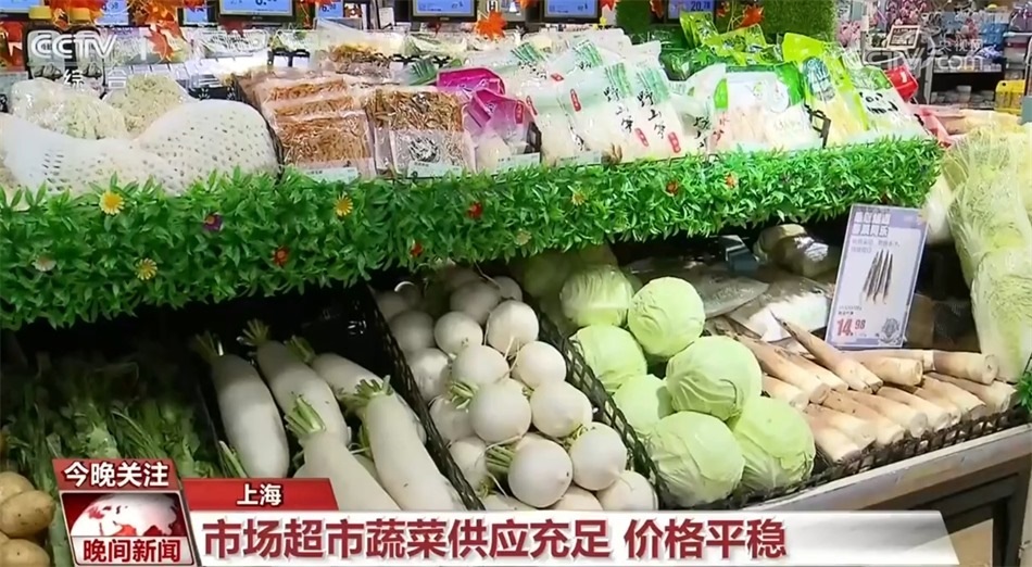 強(qiáng)冷空氣來襲,上海各菜場、超市和批發(fā)市場的商家們多措并舉,全力保供穩(wěn)價(jià)。在上海市金沙江路上的一家超市里,記者看到,五顏六色的蔬菜水果堆滿貨架,品種豐富,價(jià)格也比較穩(wěn)定。
