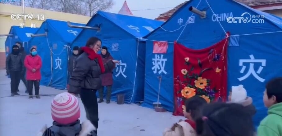 現(xiàn)在,臨時(shí)安置點(diǎn)搭建起一頂帳篷,作為學(xué)生們的“臨時(shí)帳篷課堂”,這會(huì)兒老師正在給孩子普及地震的相關(guān)知識(shí)和一些心理課程,并且?guī)е⒆觽冏龊?jiǎn)單的游戲,讓孩子在彼此的溝通和交流中舒緩心中的壓力,積蓄力量。