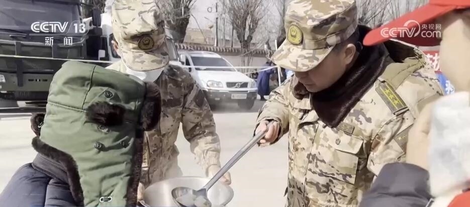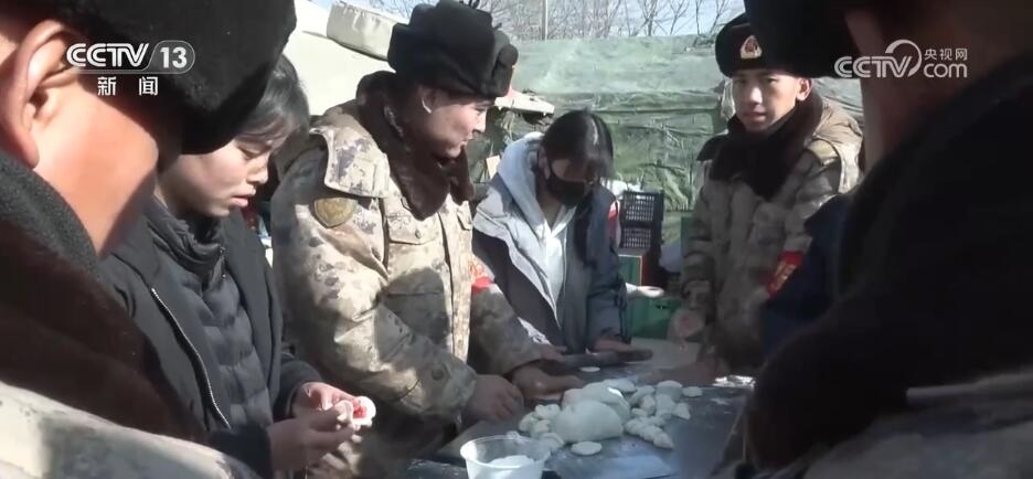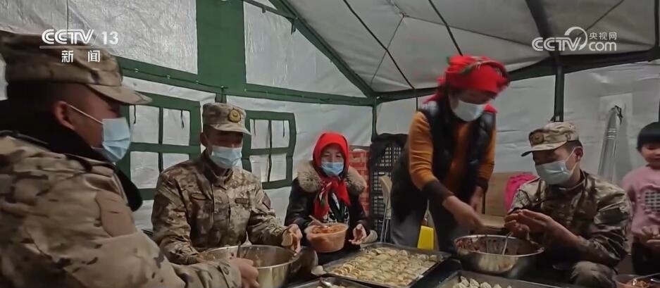 央視網(wǎng)消息:今天(12月22日)是冬至,正在執(zhí)行抗震救災(zāi)任務(wù)的部隊官兵特意準(zhǔn)備了熱氣騰騰的餃子和豐盛的食物,為群眾送去溫暖和祝福。