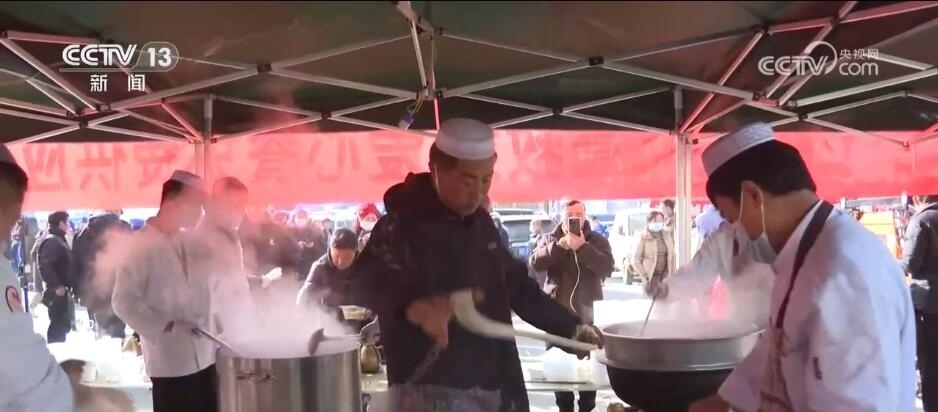 在甘肅積石山縣陳家村集中安置點(diǎn),西部戰(zhàn)區(qū)陸軍某旅官兵們晝夜不間斷為群眾提供熱食保障。今天,炊事班將上百斤的牛羊肉剁制成餡,按照1200份的標(biāo)準(zhǔn)進(jìn)行備餐,近百名地方群眾自發(fā)地和官兵們一起包餃子。