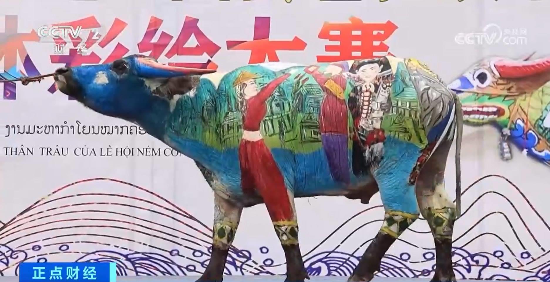 央視網(wǎng)消息:云南江城縣與越南、老撾兩國接壤,被稱作“一城連三國”。這兩天,江城縣正在舉辦三國丟包節(jié),其中獨具民族特色的國際牛體彩繪大賽吸引了不少市民目光。46頭耕牛被繪上了形象生動、五彩斑斕的圖案,登上舞臺一決高下。