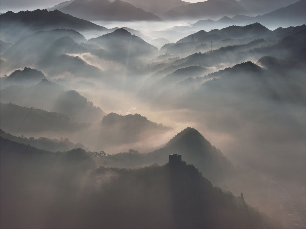 河北金山嶺長城風(fēng)光(無人機(jī)照片,2023年8月31日攝)。