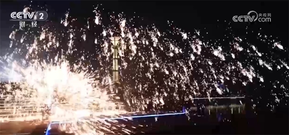 新年將至,大南門歷史文化街區(qū)里豐富多樣的民俗活動吸引了大批的游人。其中,特色表演滾花龍表演講究“圓”而“猛”,龍身舞動起來后更像是滾動的花環(huán),預(yù)示著新的一年里希望大家活力滿滿、努力奮進的美好祝愿。1600℃的鐵汁被高高拋起,被木板奮力打散,瞬間,夜空中萬點星辰散開,美不勝收。