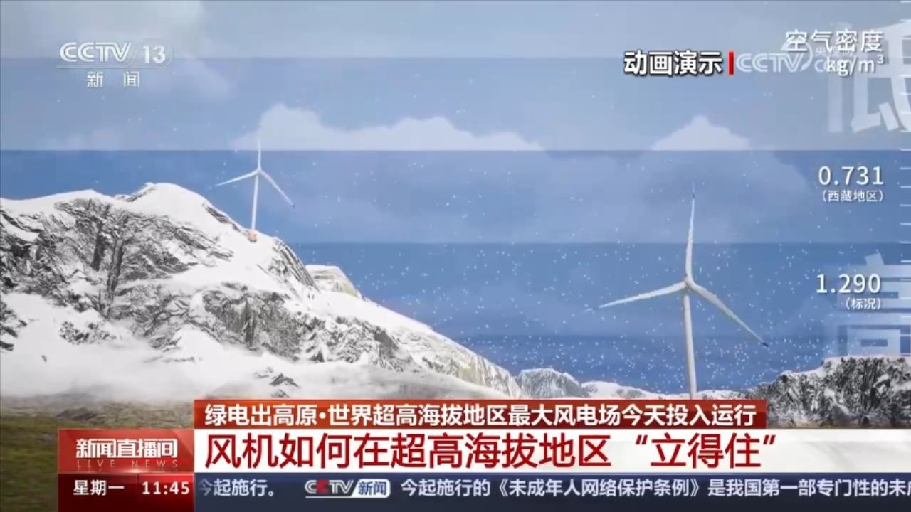 風(fēng)電行業(yè)內(nèi)部稱“高海拔地區(qū)的風(fēng)有氣無力”。這是因為風(fēng)能大小與空氣密度成正比,而高海拔地區(qū)空氣密度低,與平原地區(qū)同等風(fēng)速條件相比,高海拔地區(qū)的風(fēng)機轉(zhuǎn)速更慢、發(fā)電功率更低,即風(fēng)大但帶不動。