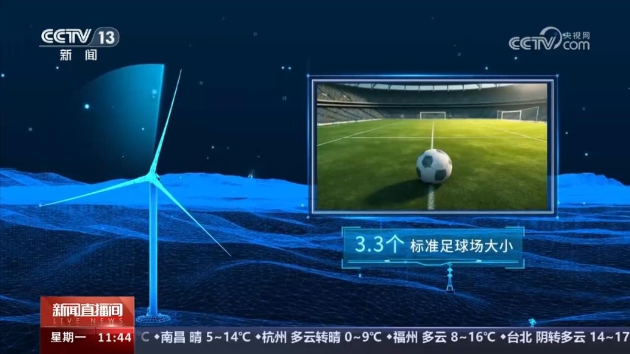 173米,是歐瑪亭嘎風(fēng)電場的風(fēng)機葉片直徑,其掃風(fēng)面積相當3.3個標準足球場大小。