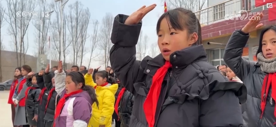 新年第一天,在積石山縣劉集鄉(xiāng)高李村,來自高李保安族春蕾小學的53名師生和高李村集中安置點的部分村民、志愿者也共同舉行了升旗儀式。孩子們對著國旗敬少先隊隊禮,村民們則注視著國旗行注目禮,表達著對祖國的敬意和深深的愛意。