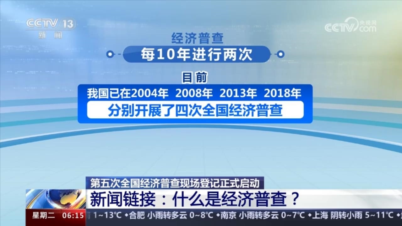 央視網(wǎng)消息:第五次全國經(jīng)濟普查現(xiàn)場登記工作1月1日正式啟動。第五次全國經(jīng)濟普查承載著摸清我國“經(jīng)濟家底”、反映高質(zhì)量發(fā)展進展的重要任務,為制定實施國民經(jīng)濟社會發(fā)展規(guī)劃、服務推進中國式現(xiàn)代化提供統(tǒng)計信息支撐。