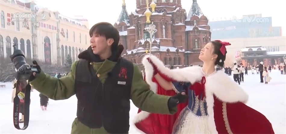 在哈爾濱索菲亞教堂前,隨處可見身著特色服飾的年輕人,在攝影師的指導(dǎo)下與這座百年歐式建筑合影。