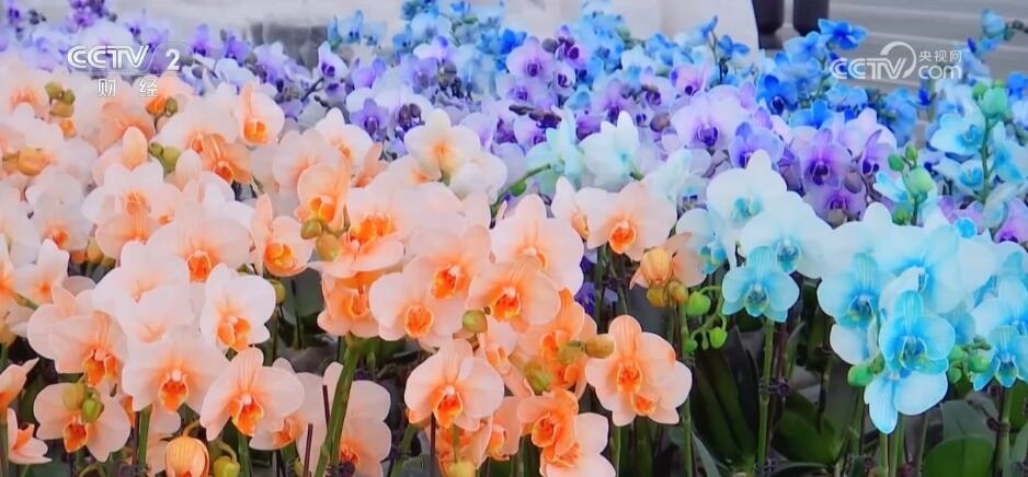為了滿足市場需求,該基地還推出“活體染色”蝴蝶蘭,讓其根莖在生長時吸收足夠多的天然色素,從而花瓣呈現(xiàn)出藍色、橙色等各種色彩。