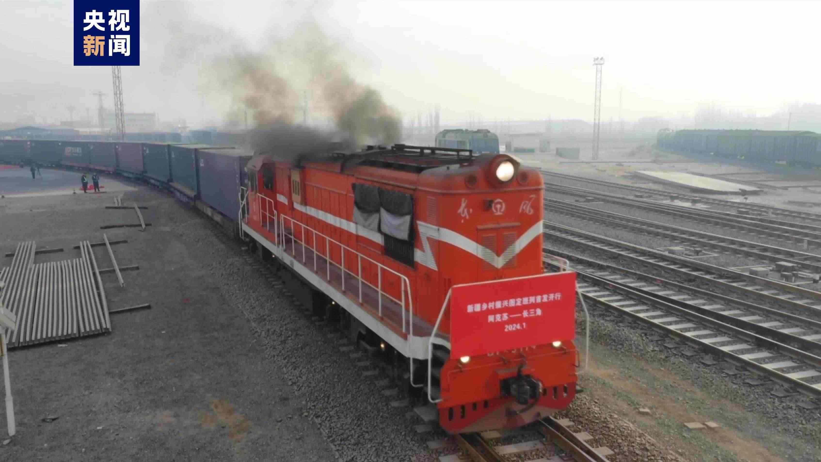 1月10日,一列裝載著50組集裝箱,1250噸棉布棉紗產(chǎn)品的貨運列車從新疆阿克蘇駛出,將開往安徽,隨后分流運輸至浙江、上海等地,首趟班列吸引了來自阿克蘇、喀什等地17家棉紡織企業(yè)的貨源。這是新疆首次開行鄉(xiāng)村振興圖定班列,班列開行后將大幅壓縮棉紡織品運輸?shù)臅r間和貨運成本,為助力南疆經(jīng)濟發(fā)展,推動鄉(xiāng)村振興注入新活力。