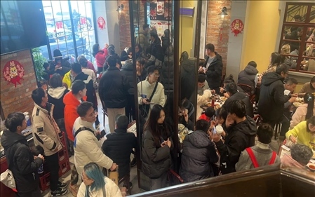 近日,上海黃浦區(qū)云南路鮮得來(lái)總店客流量暴增。人們紛紛來(lái)品嘗劇中爆火的排骨年糕。