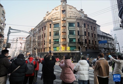 1月9日,市民游客在拍攝黃河路上的苔圣園酒家。新華社記者 劉穎 攝