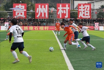1月6日,在貴州省榕江縣“村超”球場(chǎng),兩支村級(jí)球隊(duì)進(jìn)行比賽。新華社發(fā)(羅京來(lái)攝)