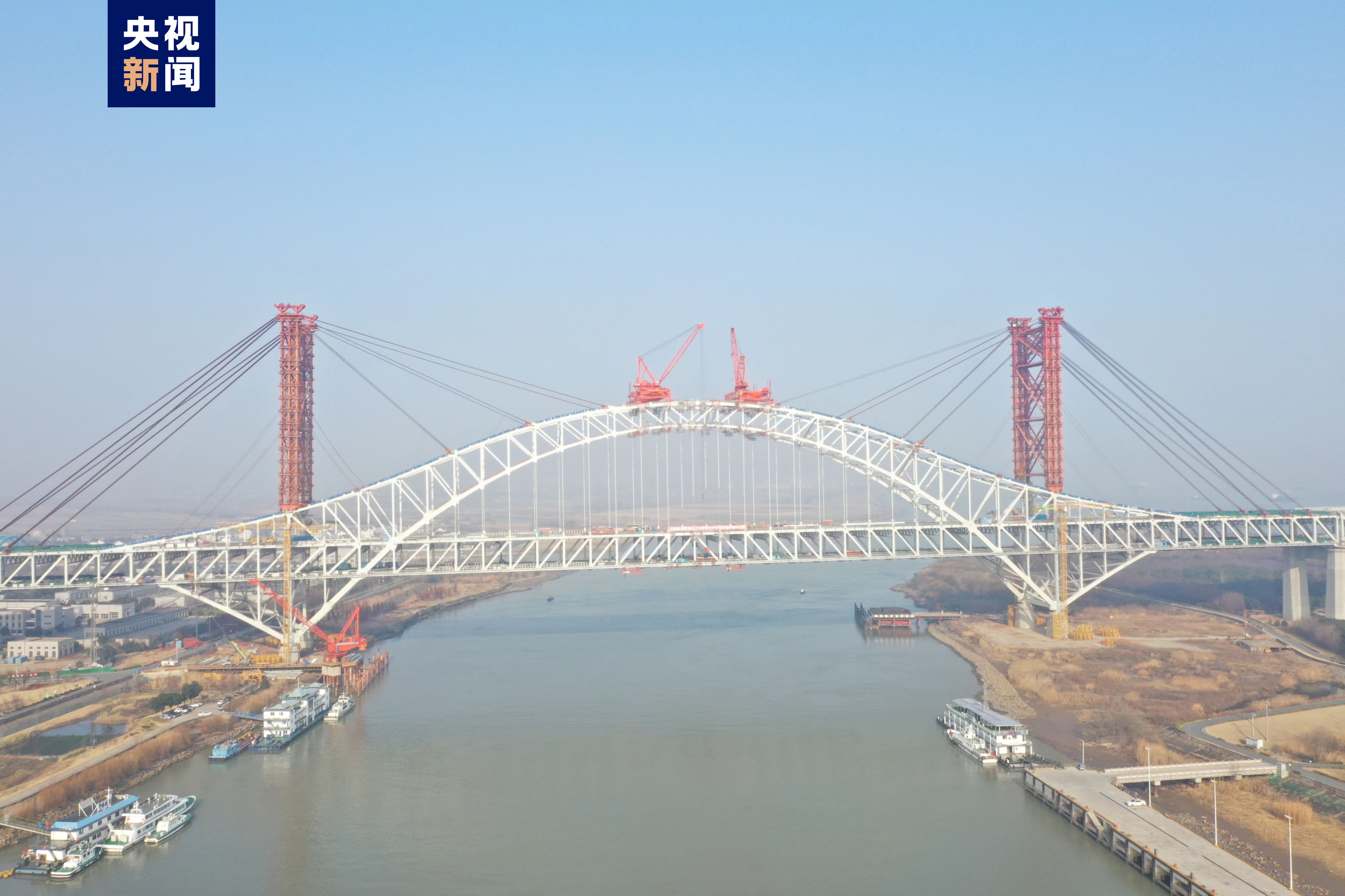 常泰長江大橋由主航道橋、錄安洲專用航道橋、錄安洲非通航孔橋、天星洲專用航道橋以及兩岸南北側(cè)引橋組成。其中,錄安洲專用航道橋主跨388米,是世界最大跨度公鐵兩用鋼桁拱橋。航道橋鋼材用量約4萬噸,高強(qiáng)螺栓用量約47萬套,歷時(shí)21個(gè)月建成。
