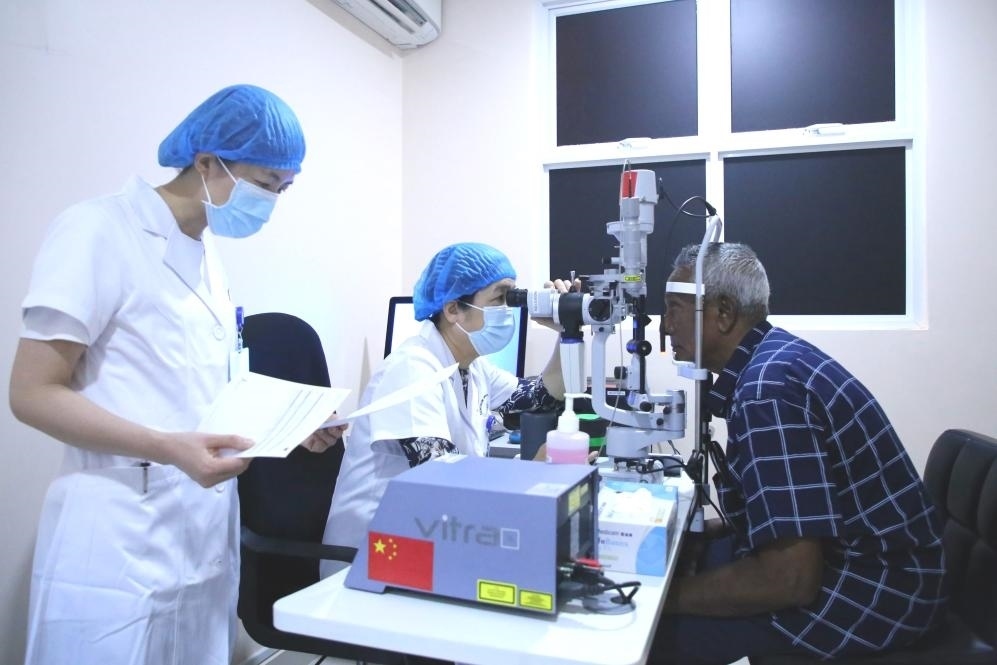69歲的艾哈邁德·卡洛是中國醫(yī)療隊(duì)“光明行”活動(dòng)的獲益者。兩個(gè)兒子曾帶著患有眼疾多年的老人輾轉(zhuǎn)多家醫(yī)院,均因手術(shù)難度大而無法得到有效治療。2023年,中國醫(yī)療隊(duì)醫(yī)生經(jīng)過充分評(píng)估后,給老人成功實(shí)施了手術(shù)。術(shù)后揭開眼罩時(shí),老人家激動(dòng)地說:“醫(yī)生,我可以看到你的胸牌了,謝謝你!”老人的兒子也在社交媒體發(fā)帖說:“真誠感謝中國醫(yī)生?!背酥尾?,中方還著力培訓(xùn)當(dāng)?shù)蒯t(yī)務(wù)人員,力爭為當(dāng)?shù)卮蛟煲恢А皫Р蛔摺钡难劭茖<谊?duì)伍。