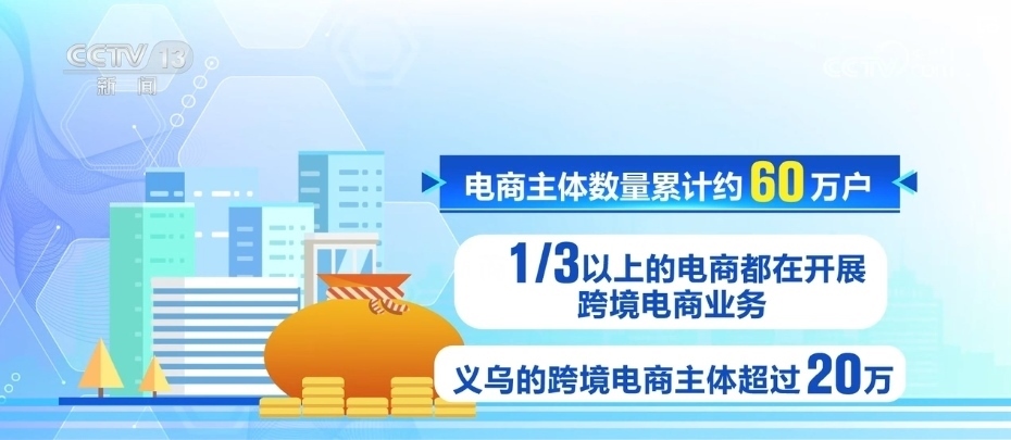2023年,義烏的市場(chǎng)經(jīng)營(yíng)主體突破100萬(wàn)戶。其中,新設(shè)電商主體17.57萬(wàn)戶,同比增長(zhǎng)48.33%。電商主體數(shù)量累計(jì)約60萬(wàn)戶,而三分之一以上的電商都在開(kāi)展跨境業(yè)務(wù),義烏的跨境電商主體超過(guò)20萬(wàn)。