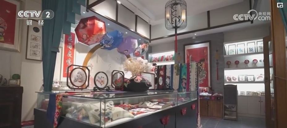 記者在年畫村的一家畫坊看到,各式各樣的年畫繡品、展品、飾品擺滿了柜臺。除了傳統題材的綿竹年畫外,創(chuàng)新類的綿竹年畫也占據了一席之地。為滿足市場需求,畫坊正加班加點趕制備貨。目前,店內準備了充足的年畫商品,來滿足顧客不同程度上的需求。
