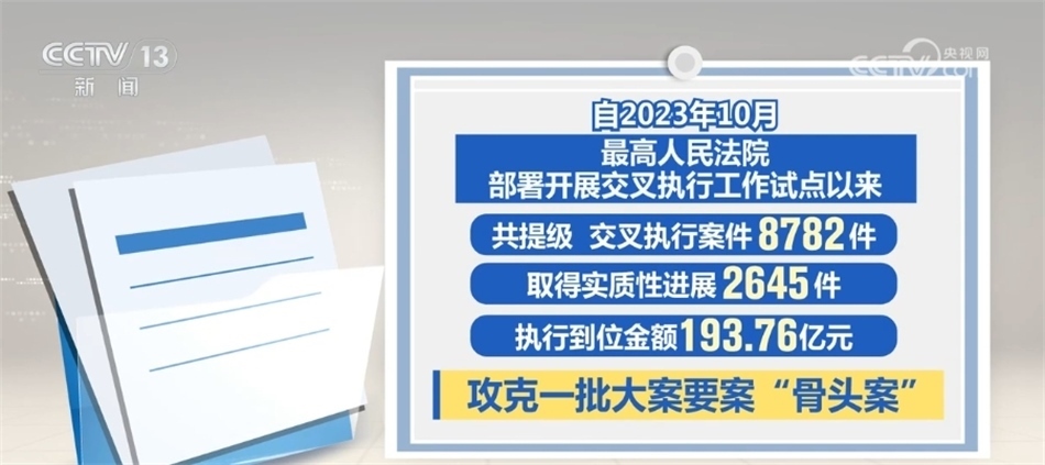 最高人民法院介紹,執(zhí)行難中常見被執(zhí)行人是當?shù)刂匾髽I(yè)、納稅大戶,甚至是重點國企或行政部門等情況。交叉執(zhí)行就是要讓接受指定的法院在不受牽絆、沒有包袱、完全依法自主的條件下力推案件執(zhí)行。據(jù)統(tǒng)計,開展交叉執(zhí)行工作試點以來,共提級、交叉執(zhí)行案件8782件,取得實質(zhì)性進展2645件,執(zhí)行到位金額193.76億元,攻克了一批大案要案“骨頭案”。最高人民法院要求,上級法院發(fā)現(xiàn)原執(zhí)行法院存在消極執(zhí)行、拖延執(zhí)行等執(zhí)行不力情形,發(fā)現(xiàn)違紀違法問題線索的,應當嚴肅依紀依法查處、追究責任。