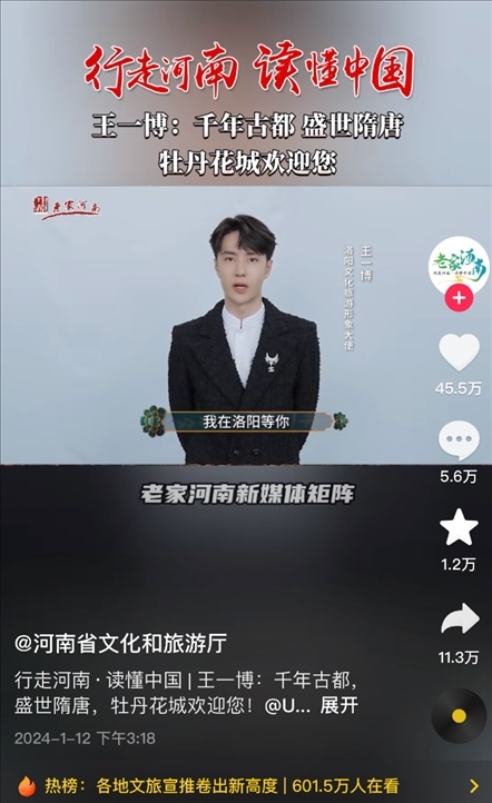 有人統(tǒng)計(jì),自1月9日起,河南文旅官方賬號(hào)“河南省文化和旅游廳”每天發(fā)布二三十條視頻,連續(xù)四天發(fā)布了112條視頻,持續(xù)展示本地文旅資源,吸引了近百萬新粉絲,主打一個(gè)“量變總會(huì)引起質(zhì)變”,以至于“河南文旅到底發(fā)了多少抖音”相關(guān)話題成為熱門搜索。