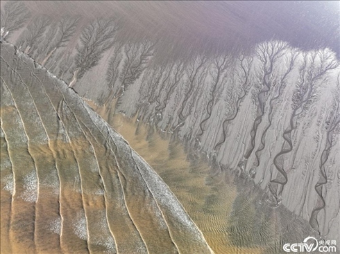 冬日的錢塘江凍出“冰雪潮汐樹”。
