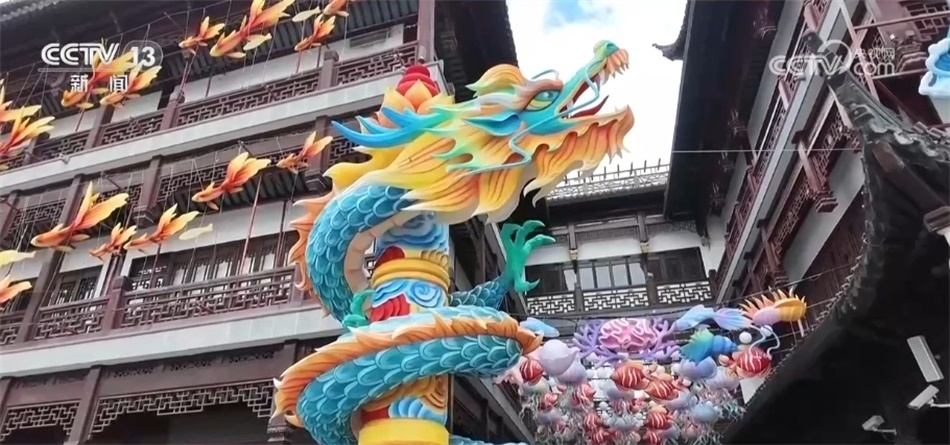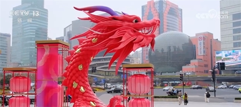 春節(jié)將至,年味漸濃。在上海,不少商圈地標(biāo)都搭建了龍型裝置,吸引市民游客。