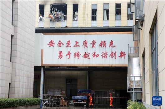 1月20日,消防救援人員在處置爆炸事故現(xiàn)場(chǎng)。新華社發(fā)