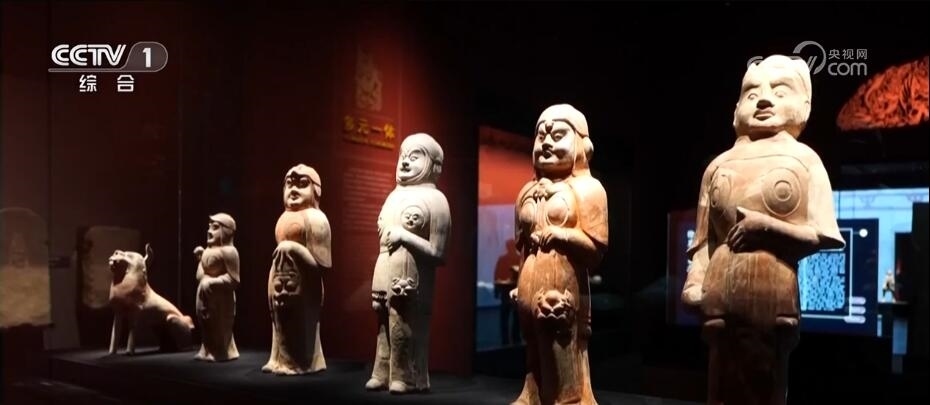 帶著濃濃異域風(fēng)情的還有晉陽古城遺址出土的列隊(duì)成陣的駱駝俑、胡人俑。專家表示,這些文物都反映出古代絲綢之路上,晉陽曾是東西方文明交流十字路口的重要古城。在展出的1000多件文物中,唐代郭行墓壁畫也十分引人注目,墓主郭行曾追隨唐太宗李世民,是一名武將。