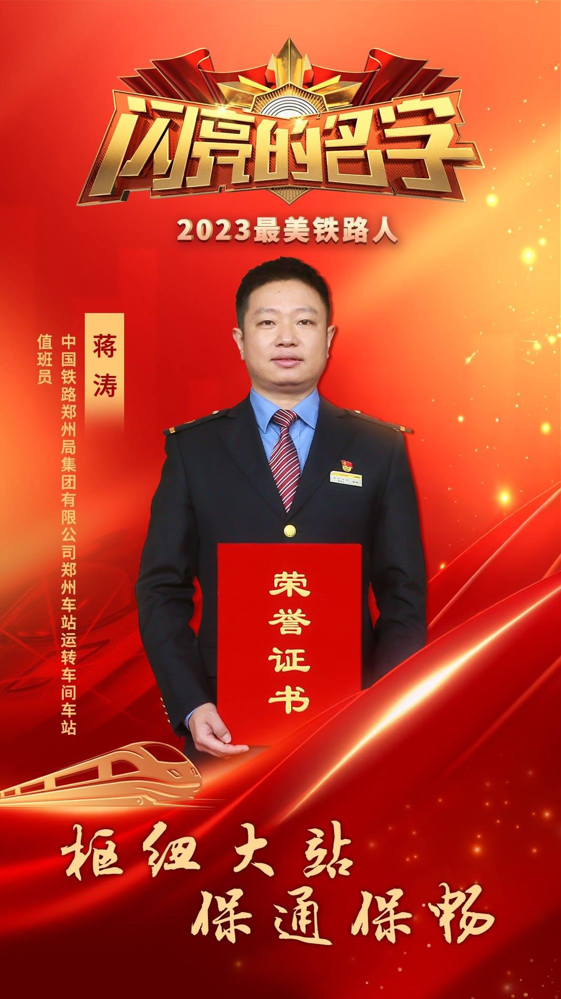 獲得2023年“最美鐵路人”稱(chēng)號(hào)的10名個(gè)人和1個(gè)集體分別是蔣濤、王庭虎、張華、李軍、王笑冰、米爾班?艾依提、斯朗旺扎、馬小利、陳燕平、朱少銘,以及通化橋隧第一維修小組。