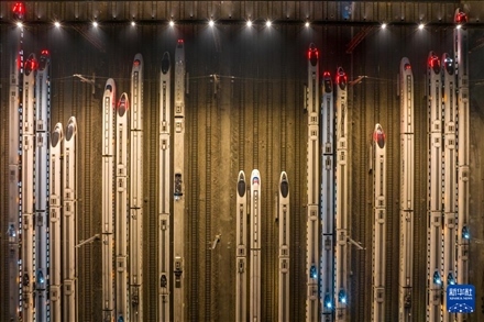 1月26日凌晨,動(dòng)車組列車??吭谀暇﹦?dòng)車段南京南動(dòng)車運(yùn)用所存車線上(無(wú)人機(jī)照片)。新華社發(fā)(方東旭攝)