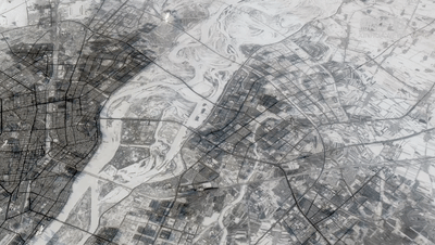 鳥瞰冬季的哈爾濱城區(qū)(實(shí)景三維地形圖)