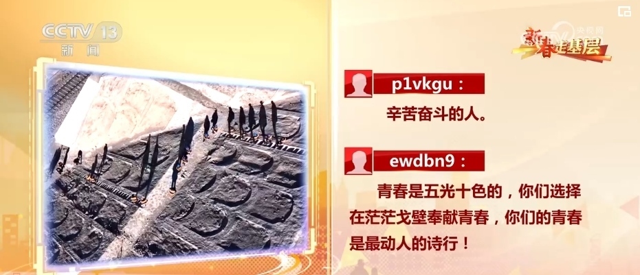 《新春走基層·阿爾金山無(wú)人區(qū)的青春之歌》播出后,網(wǎng)友們被這群在無(wú)人區(qū)工作的青年人感動(dòng)。有網(wǎng)友說(shuō):“辛苦奮斗的人?!币灿芯W(wǎng)友為他們的奉獻(xiàn)點(diǎn)贊,說(shuō):“青春是五光十色的,你們選擇在茫茫戈壁奉獻(xiàn)青春,你們的青春是最動(dòng)人的詩(shī)行!”