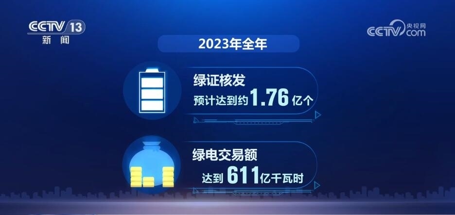 全覆蓋,是2023年我國綠電消費(fèi)的一大關(guān)鍵詞。通過給已建檔立卡的可再生能源發(fā)電項(xiàng)目全部核發(fā)綠證,我國成為全球最大的綠證供應(yīng)市場。全年綠證核發(fā)預(yù)計達(dá)到約1.76億個,綠電交易額達(dá)到611億千瓦時,分別是2022年的7.8倍和10.5倍。