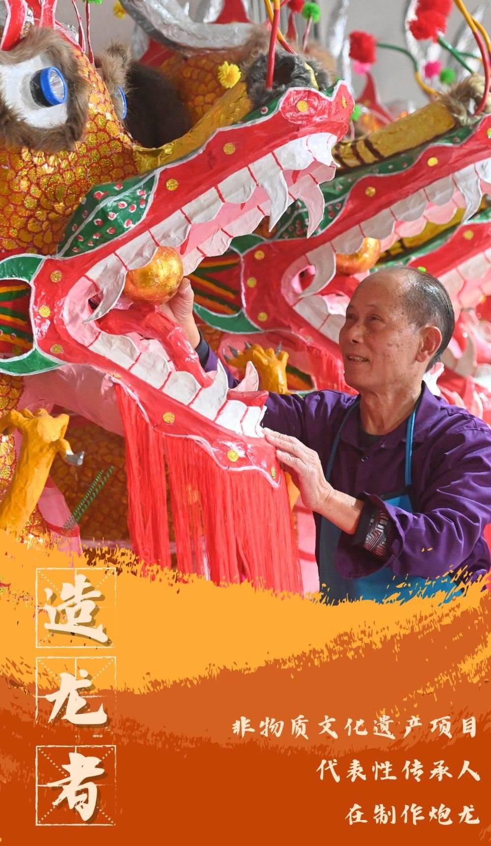 龍年新春漸近,廣西70歲的非物質(zhì)文化遺產(chǎn)項目代表性傳承人鄒玉特每天坐在一堆“龍”中間,爭分奪秒扎制炮龍,迎接“中國炮龍之鄉(xiāng)”廣西賓陽縣新春炮龍節(jié)。