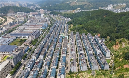 長廣煤礦安置小區(qū)其中一期——金水苑小區(qū)鳥瞰圖。陳鮮忠工作室供圖